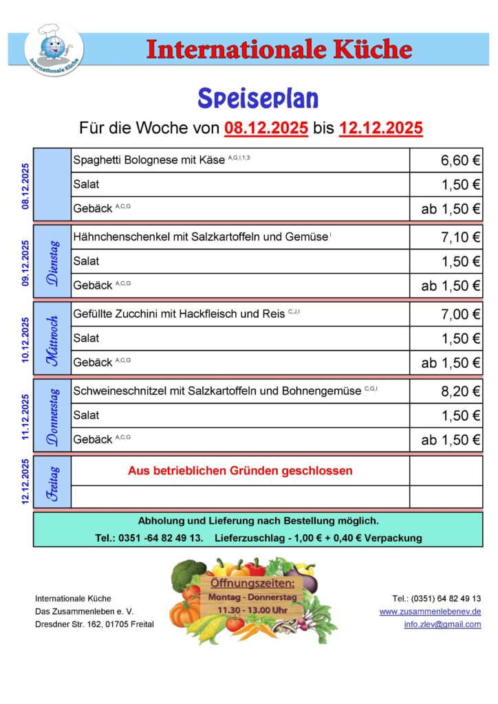 Aktuelles Menü für die Woche 08.12. – 12.12.2025