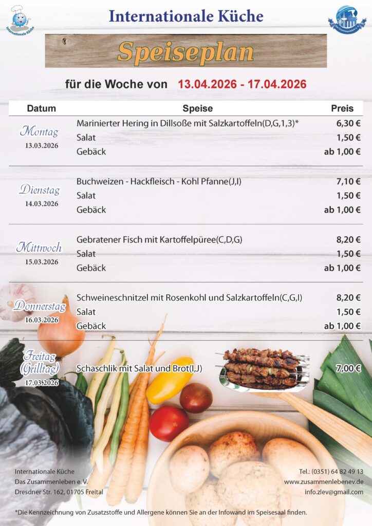 Aktuelles Menü für die Woche 09.03. – 13.03.2026