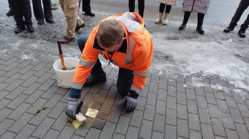 Verlegung eines Stolpersteins zum Gedenken an die Opfer des Nationalsozialismus.