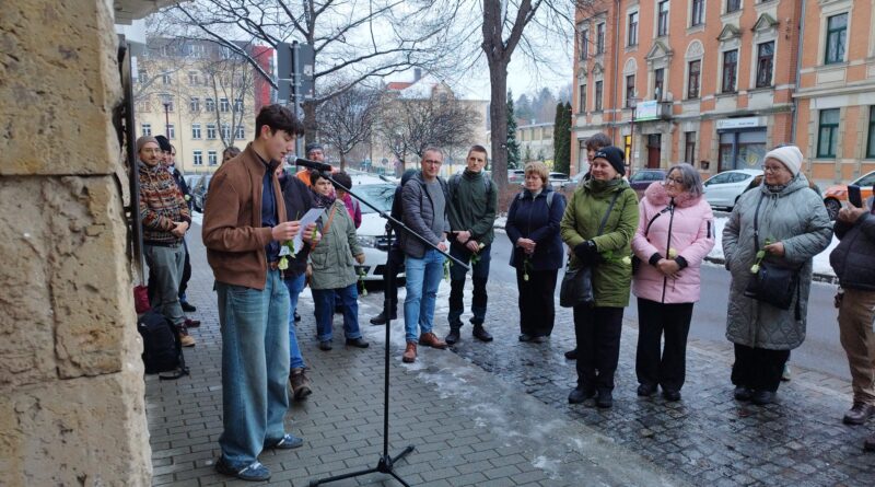 Der Verein Das Zusammenleben e. V. legte ebenfalls Blumen am Denkmal für die Opfer des Nationalsozialismus auf dem „Platz des Friedens“ in Freital nieder.